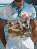 Men's Beach Cat Print Casual Polo Shirt
