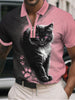 Men's Cat Art Print Casual Polo Shirt