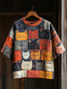 Women's Artistic Cat Patchwork Design Print T-shirt