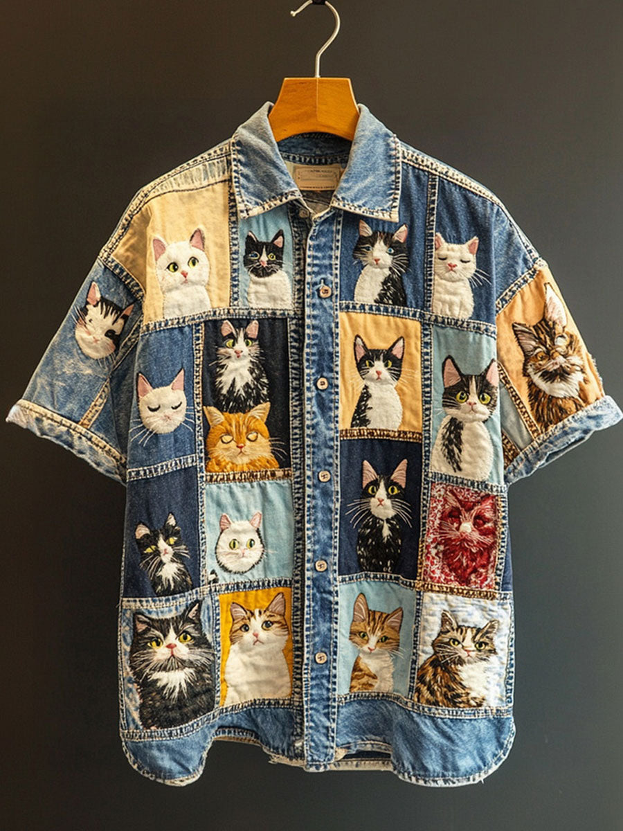 Women's Artistic Cat Patchwork Design Printed Jacket