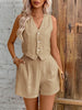 Women's Cotton and Linen V-neck Sleeveless Vest Shorts Set