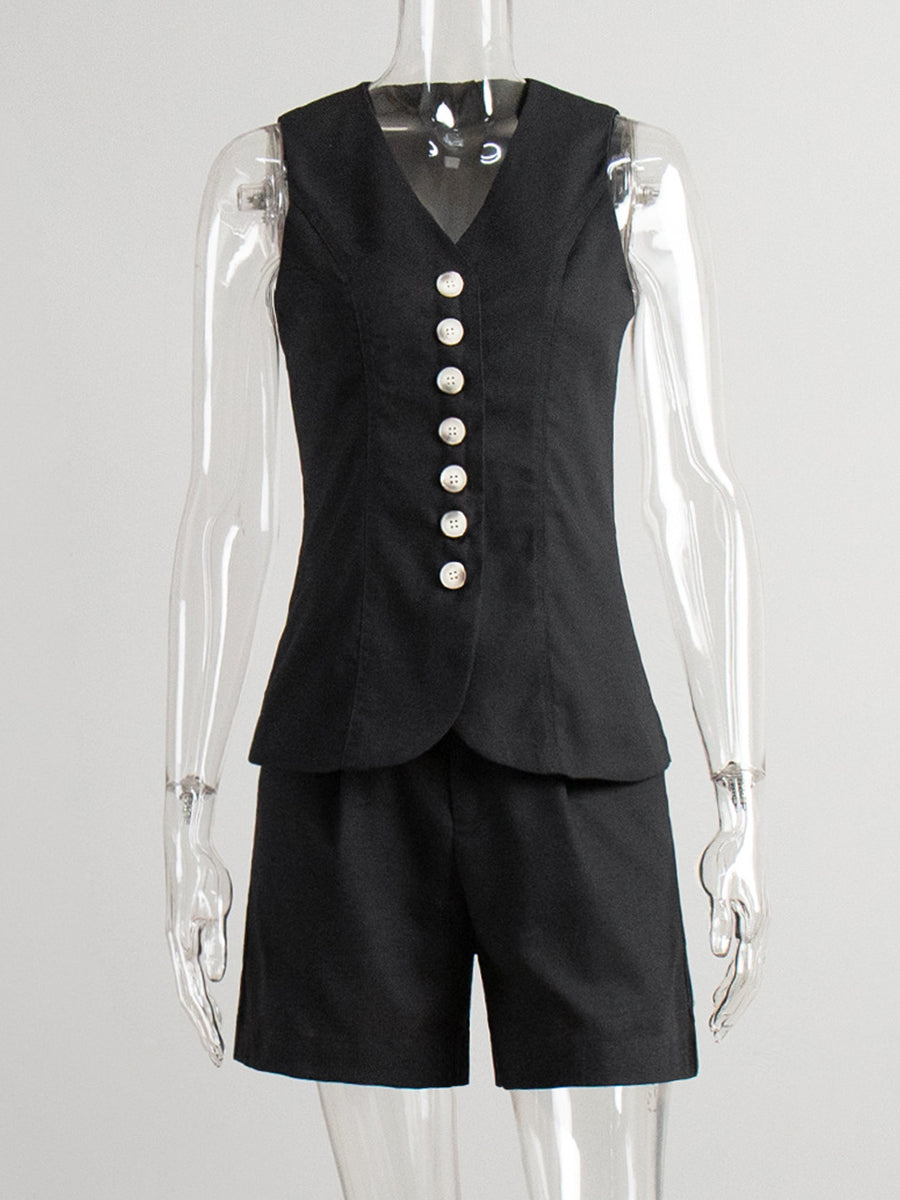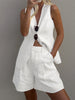 Women's Solid Color Cotton And Linen Vest Shorts Set