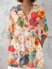 Women's Vintage Floral Print V-Neck 3/4 Sleeve Cotton and Linen Shirt